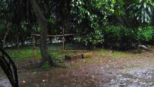 Seorang warga Dukuh, Kramat Jati, Jakarta Timur, Chandra mengirimkan gambar hujan es yang mengguyur di wilayah rumahnya. Terlihat butiran es tersebar di pekarangan rumahnya.