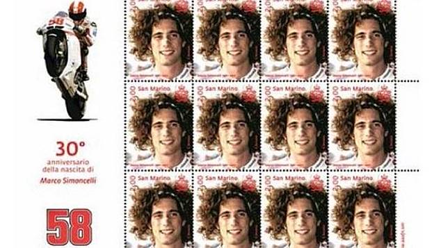 Pemerintah San Marino sengaja membuat sesuatu agar Simoncelli bisa terus dikenang. Mereka menerbitkan perangko bergambar wajah Simoncelli dengan rambur kribonya yang khas.